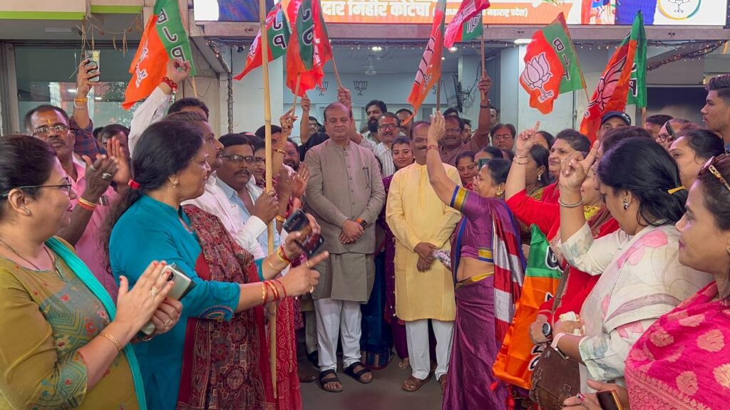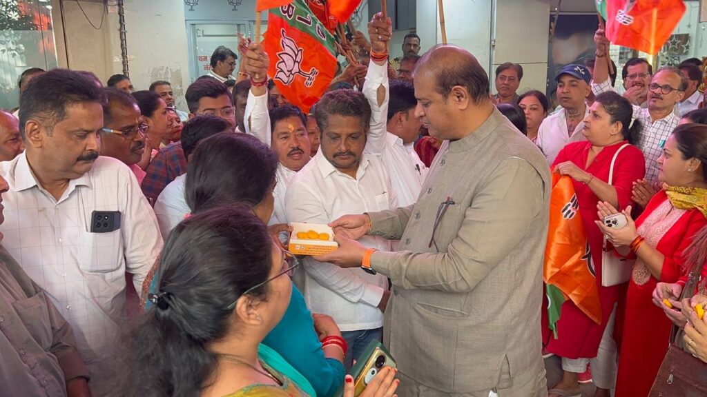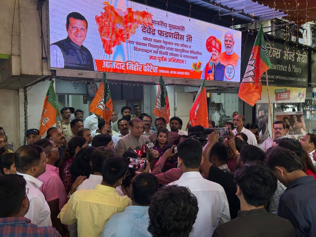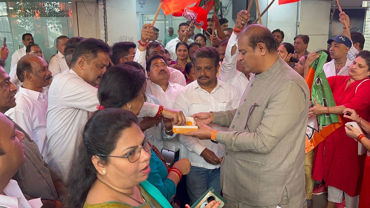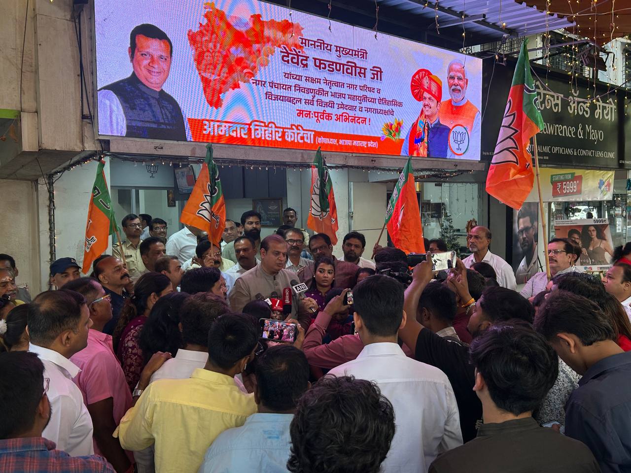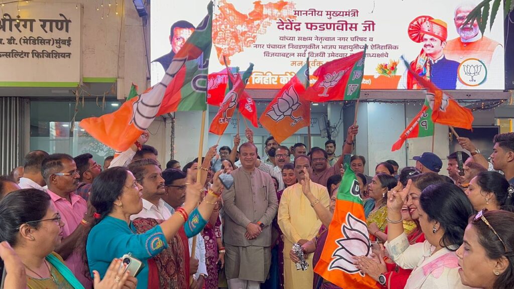 माननीय मुख्यमंत्री श्री देवेंद्र फडणवीस जी यांच्या सक्षम नेतृत्वाखाली राज्यातील नगर परिषद व नगर पंचायत निवडणुकांत भाजप महायुतीला मिळालेल्या दणदणीत विजयाचा जल्लोष उपस्थित कार्यकर्ते व पदाधिकाऱ्यांसोबत उत्साहात साजरा केला.