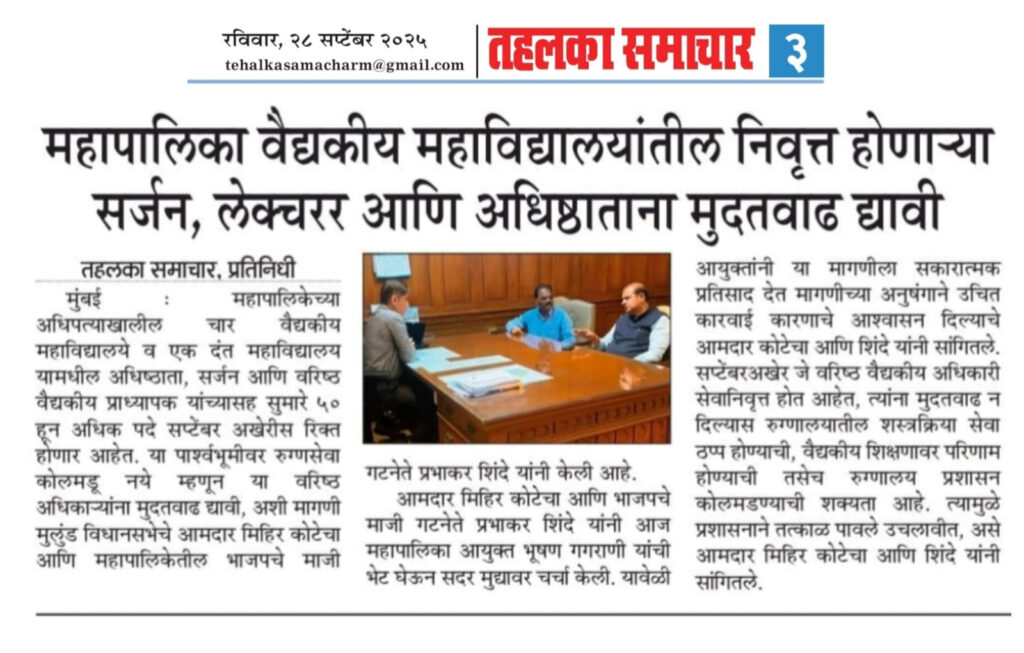 Home Events महापालिका वैद्यकीय महाविद्यालयांतील निवृत्त होणाऱ्या सर्जन, लेक्चरर आणि अधिष्ठाताना मुदतवाढ द्यावी