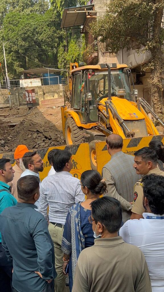 महापालिका अधिकारी व स्थानिक नगरसेविका सौ. दिपिका घाग यांच्या सोबत मुलुंड कॉलनी येथील जय शास्त्री नगर, राहुल नगर, पवई चौक व हिंदुस्थान चौक येथे सुरू असलेल्या सीसी रोड कामांची प्रत्यक्ष पाहणी केली.