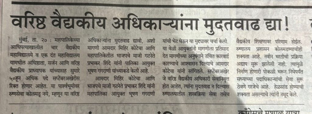 Home Events वरिष्ठ वैद्यकीय अधिकाऱ्यांना मुदतवाढ द्या ! वरिष्ठ वैद्यकीय अधिकाऱ्यांना मुदतवाढ द्या ! Date Sep 29 2025 Expired! Time 8:00 am - 6:00 pm Please follow and like us: Share this event + Add to Google Calendar