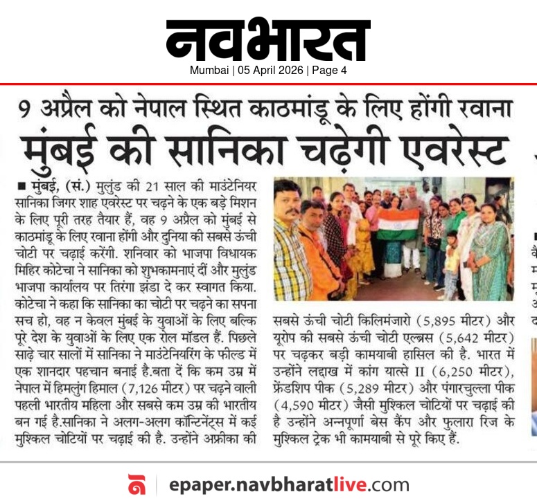 Home Events 9 अप्रेल को नेपाल स्थित काठमांडू के लिए होंगी रवाना मुंबई को सानिका चढ़ेगी एवरेस्ट 9 अप्रेल को नेपाल स्थित काठमांडू के लिए होंगी रवाना मुंबई को सानिका चढ़ेगी एवरेस्ट Date Apr 05 2026 Expired! Time 8:00 am - 6:00 pm नवभारत Please follow and like us: Share this event + Add to Google Calendar